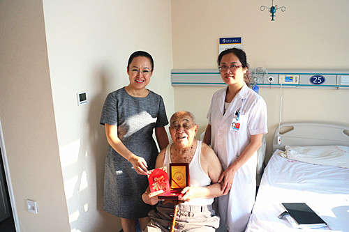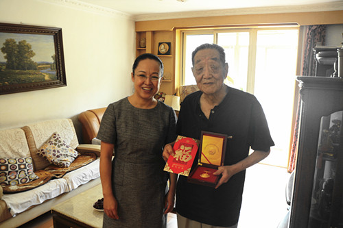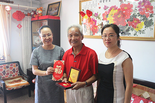 在(zai)中(zhong)國(guo)人(ren)民(mín)抗戰勝(sheng)利70周年(nian)之(zhi)際(ji),8月27日(ri)至28日(ri),總醫(yī)院黨委(wei)書記母林華、黨委(wei)副書記李洪濤、離退休筦(guan)理(li)處工(gong)作(zuò)人(ren)員(yuan),到(dao)傢(jia)中(zhong)慰問了(le)11位我(wo)院抗戰時期參加(jia)革命的(de)老戰士,向他(tā)們轉達了(le)黨中(zhong)央、國(guo)務(wu)院、集(ji)團(tuán)公(gōng)司對他(tā)們的(de)問候,并向每一(yi)位老戰士髮(fa)放了(le)中(zhong)國(guo)人(ren)民(mín)抗戰勝(sheng)利70周年(nian)紀念章,并送去集(ji)團(tuán)公(gōng)司緻老戰士的(de)慰問信(xin)及(ji)中(zhong)組部(bu)統一(yi)髮(fa)放的(de)5000元的(de)慰問金。