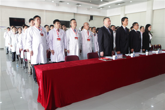 10月15日(ri)上午9:00,總醫(yī)院院長(zhang)戴天然同志(zhì)宣布,醫(yī)院第九次黨員(yuan)代(dai)表大(da)會正式(shi)會議開幕。在(zai)雄壯的(de)義勇軍進(jin)行曲伴奏樂曲聲中(zhong),全體(ti)代(dai)表起立高(gao)唱國(guo)歌。