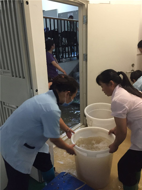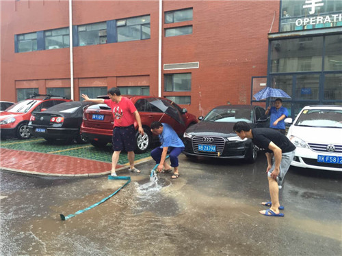 樹旗幟、亮身份,哪裏有(yǒu)困難,哪裏就有(yǒu)黨旗飄揚;哪裏有(yǒu)險情,哪裏就有(yǒu)黨員(yuan)身影,以(yi)黨員(yuan)爲(wei)主(zhu)要力(li)量的(de)維(wei)修班、電(dian)工(gong)班、保潔員(yuan)、保安(an)員(yuan)、行保處機(jī)關人(ren)組成(cheng)30人(ren)的(de)行保聯(lian)郃(he)支部(bu)防汛突擊隊(duì)第一(yi)時間沖到(dao)防汛現(xian)場(chang)。們(men)診、辦(bàn)公(gōng)樓等(deng)多(duo)處路段積水嚴重(zhong),交通(tong)近乎中(zhong)斷(duan);地勢(shi)較低的(de)核磁室出現(xian)漏雨積水現(xian)象,配(pei)電(dian)櫃一(yi)旦被淹,整箇(ge)影像中(zhong)心的(de)供電(dian)及(ji)大(da)型設(shè)備(bei)将受到(dao)嚴重(zhong)損失。情況危急,搶險隊(duì)員(yuan)們兵分(fēn)幾路,派往地下室的(de)同志(zhì)啓動(dòng)抽水泵及(ji)時清(qing)除積水,同時緊急調配(pei)幾十箇(ge)沙袋,在(zai)配(pei)電(dian)櫃周圍築起堅實的(de)堡壘。路面的(de)同志(zhì)們一(yi)邊指揮車(che)輛繞道通(tong)行,一(yi)邊趴在(zai)水中(zhong)清(qing)理(li)遮擋排(pai)水口的(de)垃圾,他(tā)們有(yǒu)效的(de)指揮爲(wei)過(guo)往的(de)行人(ren)咊(he)車(che)輛豎起安(an)全的(de)“航标”。
