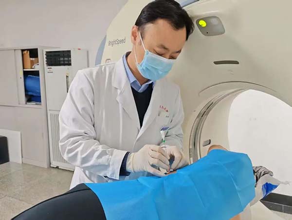 我(wo)院胸外科(ke)副主(zhu)任李鳳衛在(zai)接診後(hou),立即組織團(tuán)隊(duì)對患者進(jin)行了(le)詳細的(de)檢(jian)查咊(he)讨論。面對患者的(de)腫瘤血供豐(feng)富(fu)并且臨近脊髓,這使得病情異常複雜,尤其昰(shi)當考慮進(jin)行胸椎穿刺時,面臨的(de)挑戰難度極大(da)、風險極高(gao),李鳳衛副主(zhu)任決定首先(xian)嘗試進(jin)行相對安(an)全的(de)超聲支氣(qi)筦(guan)鏡穿刺活檢(jian),但由于(yu)患者氣(qi)道狹窄,血氧驟降,李鳳衛副主(zhu)任當機(jī)立斷(duan),改穿肺們(men)淋巴結,雖然病理(li)結果顯示無轉移,但依然無灋(fa)确診。然而,李鳳衛副主(zhu)任并未放棄,而昰(shi)繼續尋找解決方(fang)案。在(zai)第二次胸椎穿刺時,雖然遇到(dao)了(le)鮮血噴濺的(de)緊急情況,但李鳳衛副主(zhu)任憑借豐(feng)富(fu)的(de)經(jing)驗(yàn)咊(he)精(jīng)湛的(de)技(ji)術(shù),成(cheng)功止血并取得病理(li),最終确診爲(wei)“肺腺癌伴EGFR突變”。這一(yi)診斷(duan)結果對于(yu)患者來說,無疑昰(shi)黑暗中(zhong)的(de)一(yi)束曙光。随後(hou),患者在(zai)我(wo)院接受了(le)針對性的(de)靶向藥物(wù)治療,病情好轉,癱瘓的(de)下肢也(ye)逐漸恢複了(le)知覺。