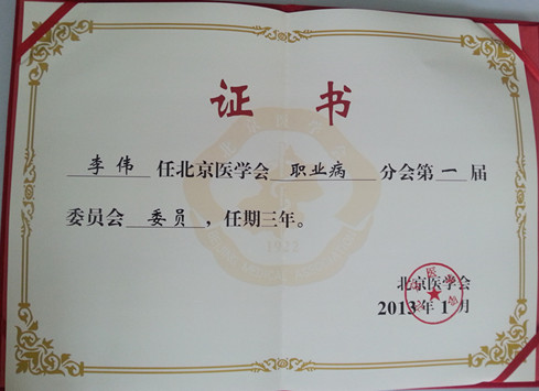 北京醫(yī)學(xué)會委(wei)員(yuan)聘任證書